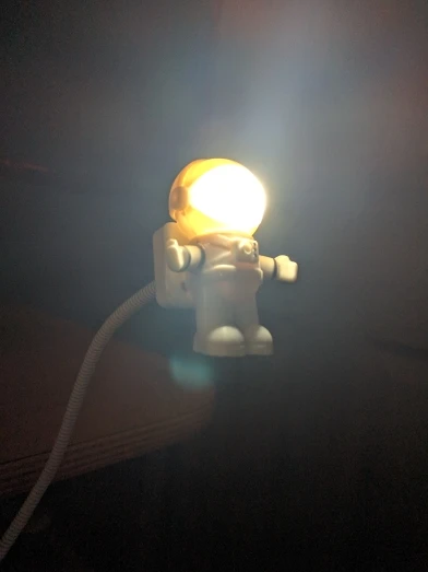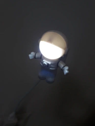 Need a friend to keep you company while you work late nights? This little astronaut is ready to keep you company and light up your space.