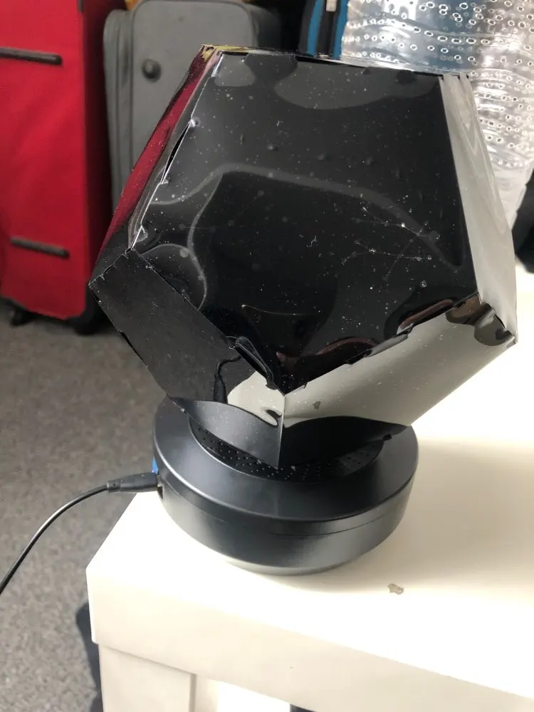 El montaje primero me resultó difícil, pero nada, tarde 15 minutos y al terminar me di cuenta que era muy fácil. No gira, pensaba que si, pero me da igual. Muy bonita la luz amarilla. Me gusta mucho. Llegó súper rápido a pesar del covid - 19. Muchísimas gracias!!!! Esta noche dormiré con el cielo estrellado Genial la lámpara una vez que la has montado y la enciendes... Súper bonitas las estrellas. Y súper rápido. Mil gracias saludos desde España .